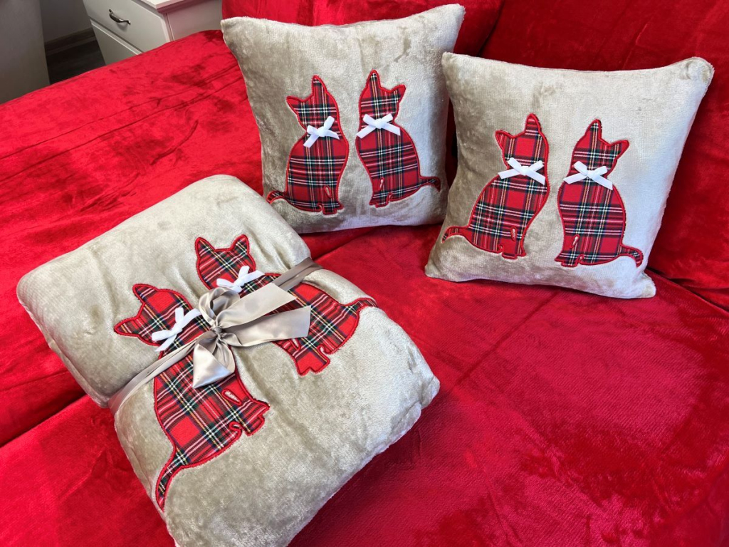 • Roztomilá výšivka koček pro extra dávku útulnosti