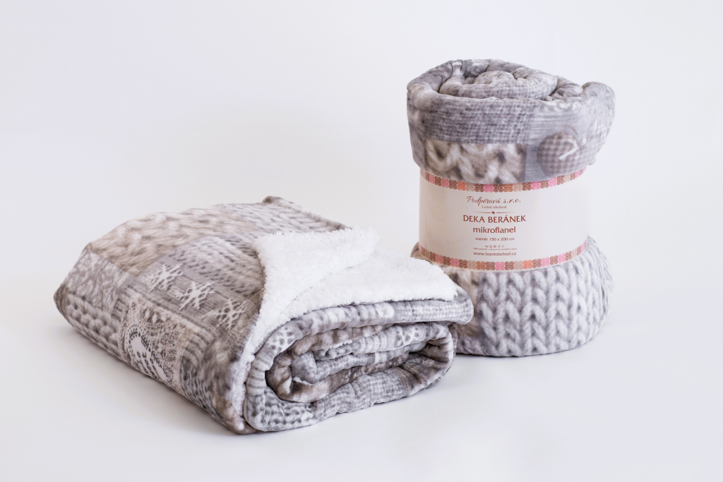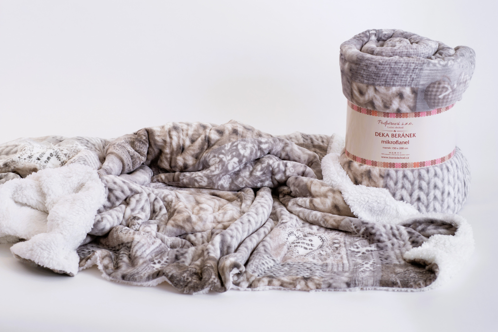 Krásná deka s beránkem z luxusního měkkého mikroflanelu. Velmi hebká přikrývka z kvalitního materiálu. Beránková deka je vyrobená z hladkého mikroflanelu v kombinaci s vysokogramážní imitací ovčí vlny na vnitřní straně.