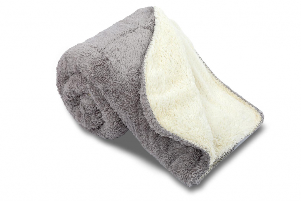 Dvouvrstvá příkrývka, s obnitkovaným krajem. Spodní strana je v přírodním odstínu, vrchní strana v teplé šedé. Deka je nadýchaná, chloupky nežmolkují. Deka je velmi teplá a uspokojí i náročnějšího zákazníka. Jednoznačně můžeme potvrdit, že patří mezi naše nejprodávanější kousky.