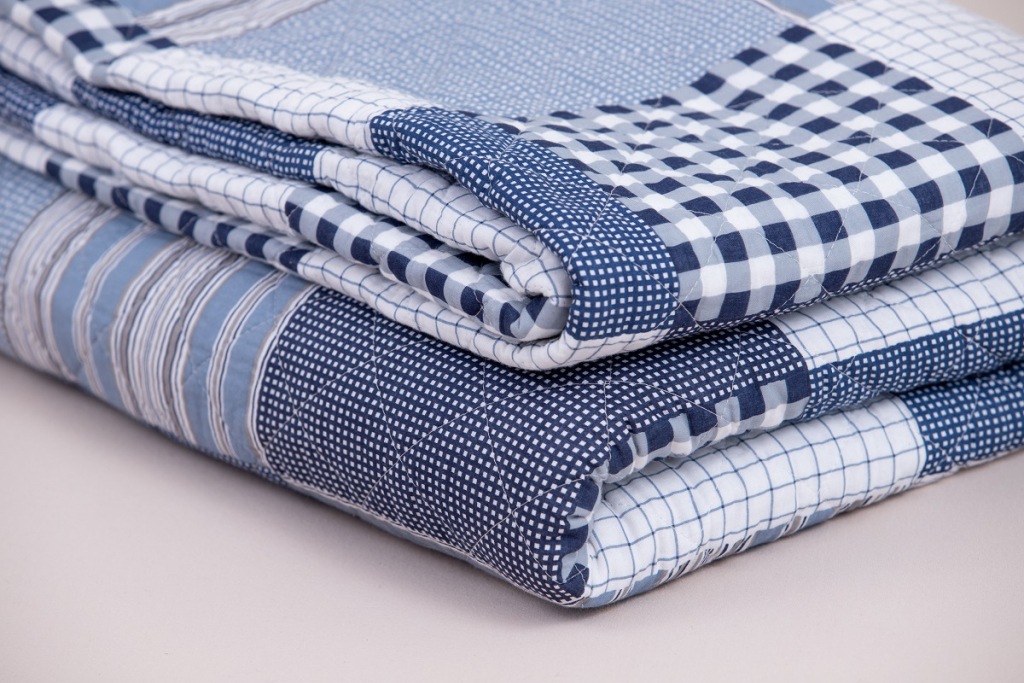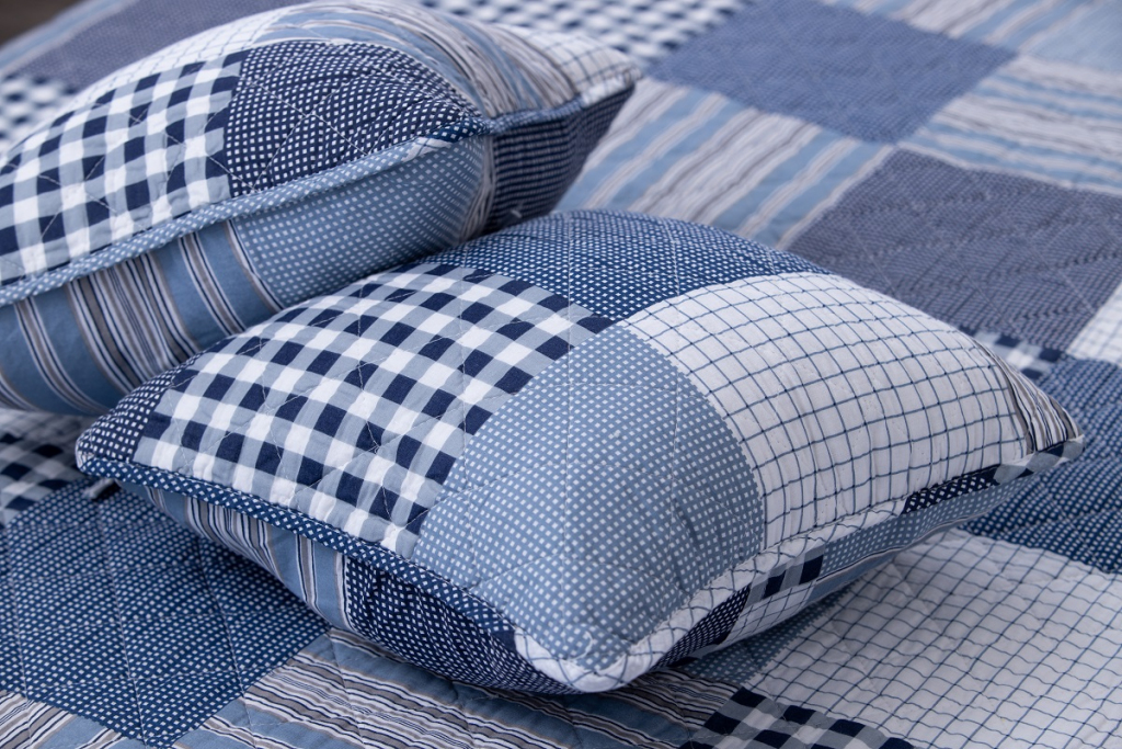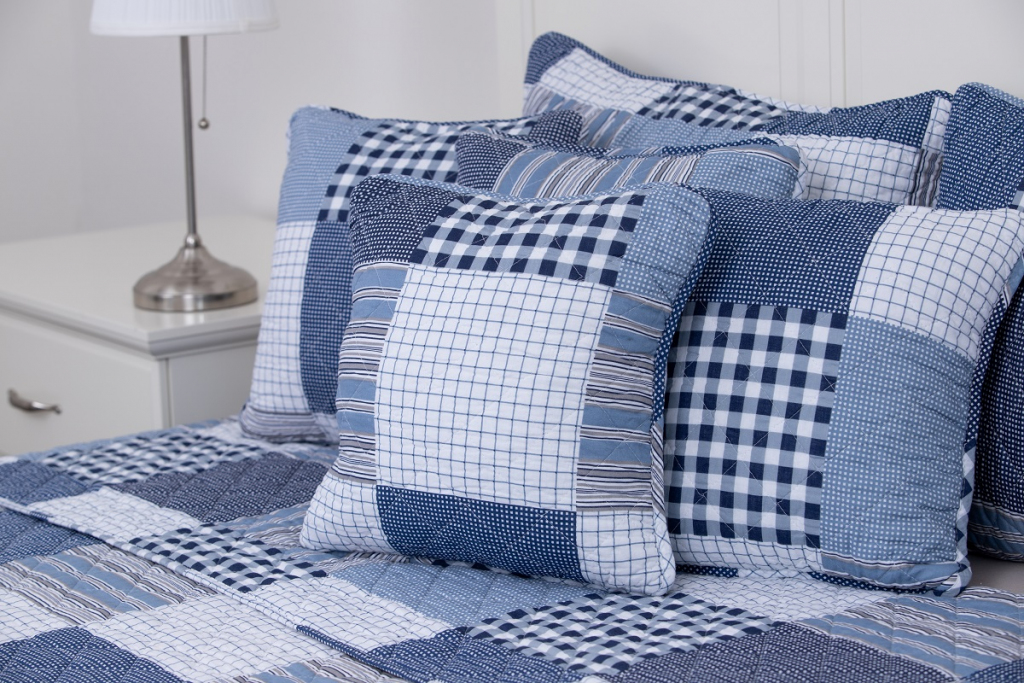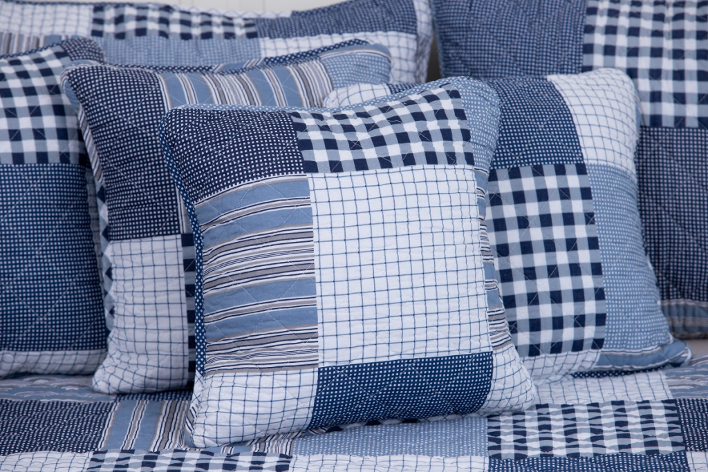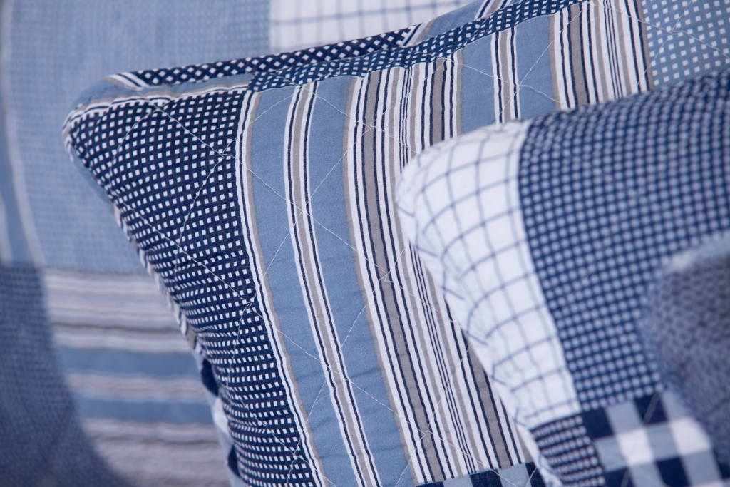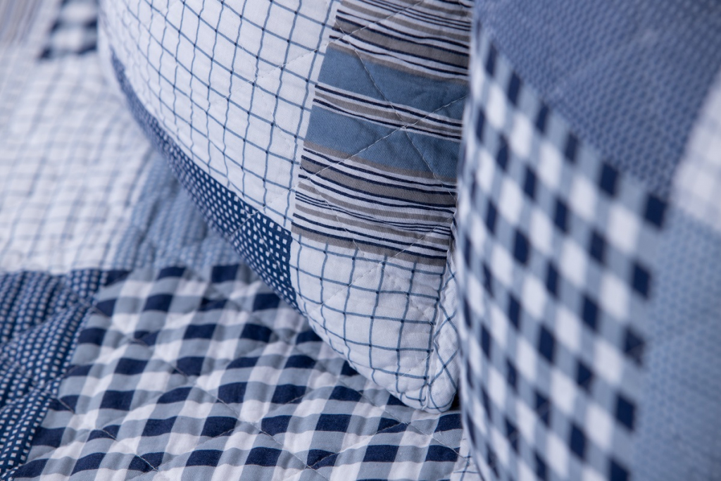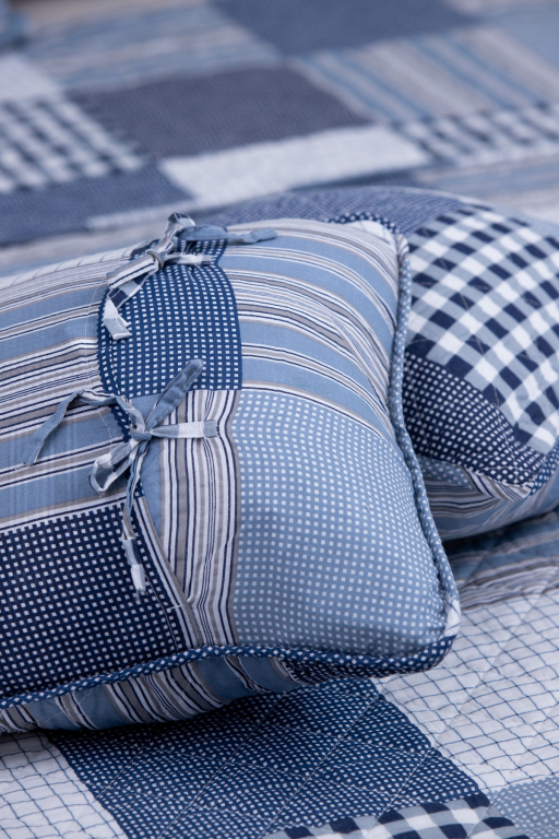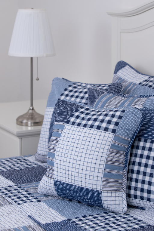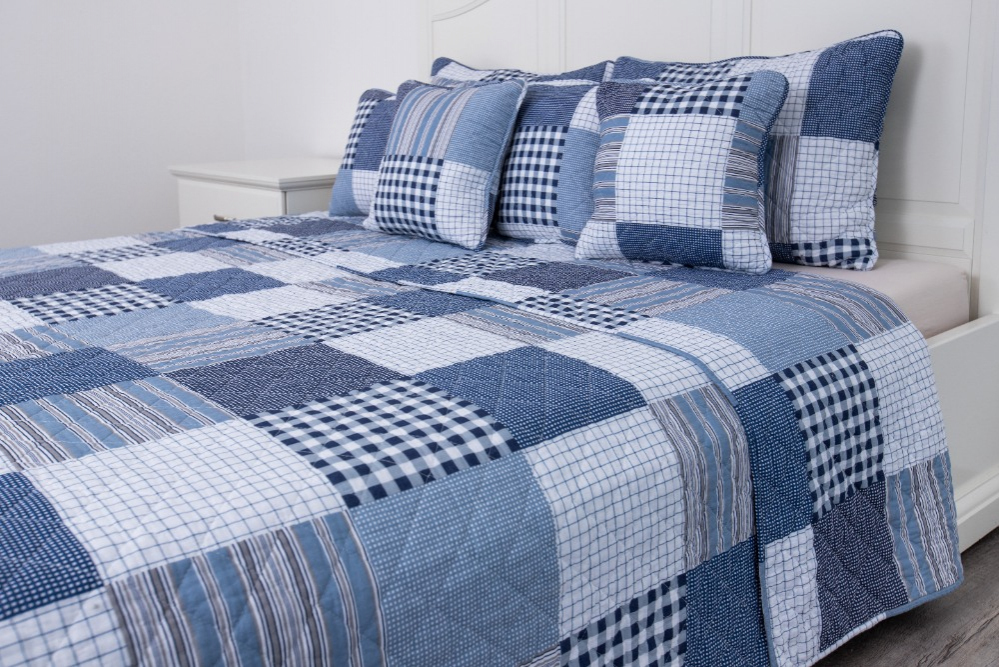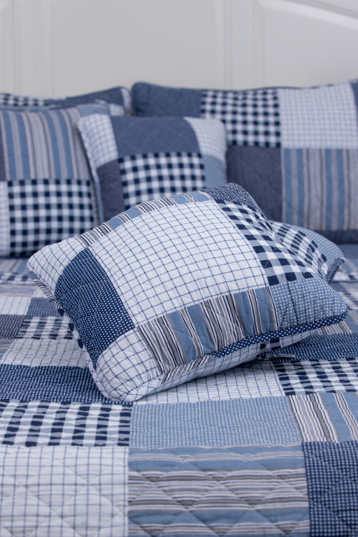 Oboustranný prošívaný přehoz přes postel v patchworkovém vzoru, tentokrát s chalupářskou modrou kostkou. Přehoz je detailně prošíván v celé své ploše, což zaručuje tvarovou stálost a opravdu snadné pokrývání lůžka. Ozdobné prošití však nejvíce oceníte při pohledu na tento přehoz či polštář. Vypadají totiž opravdu úžasně!