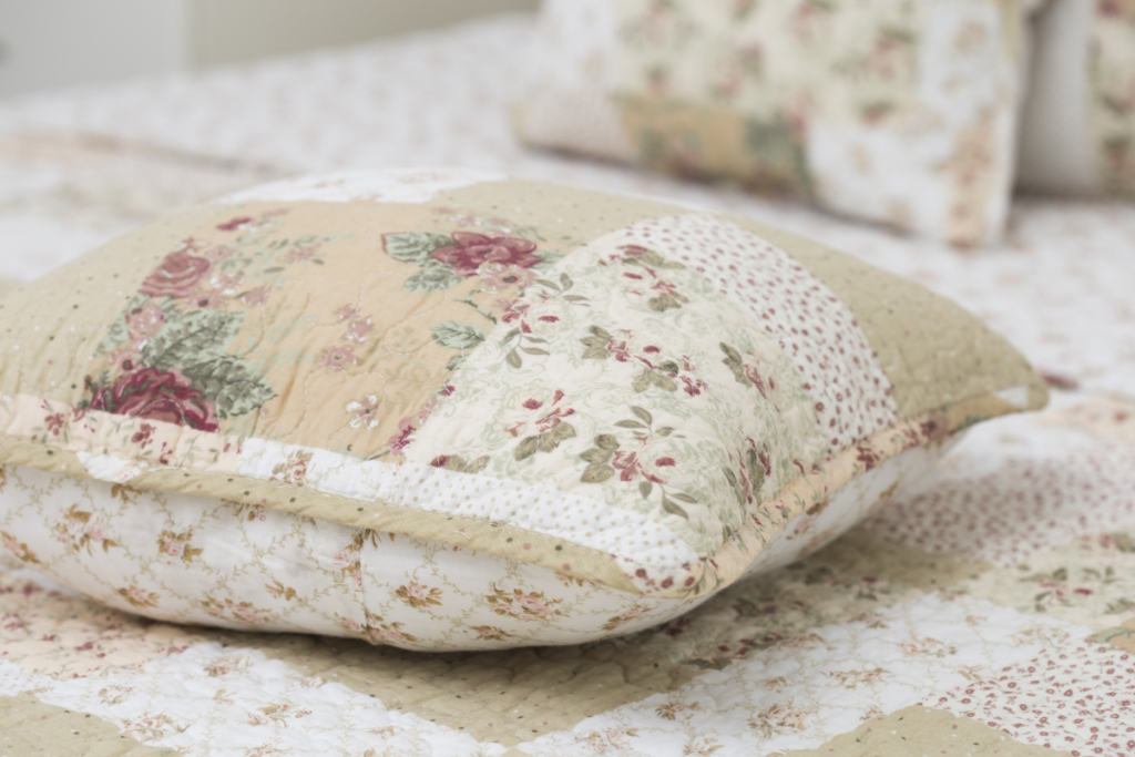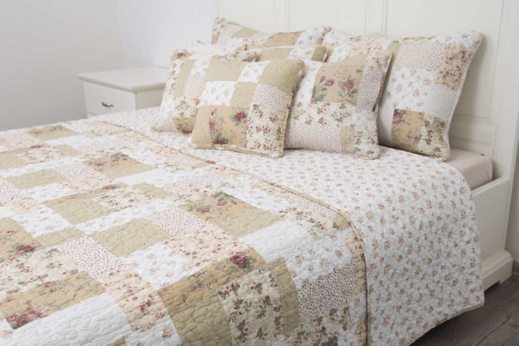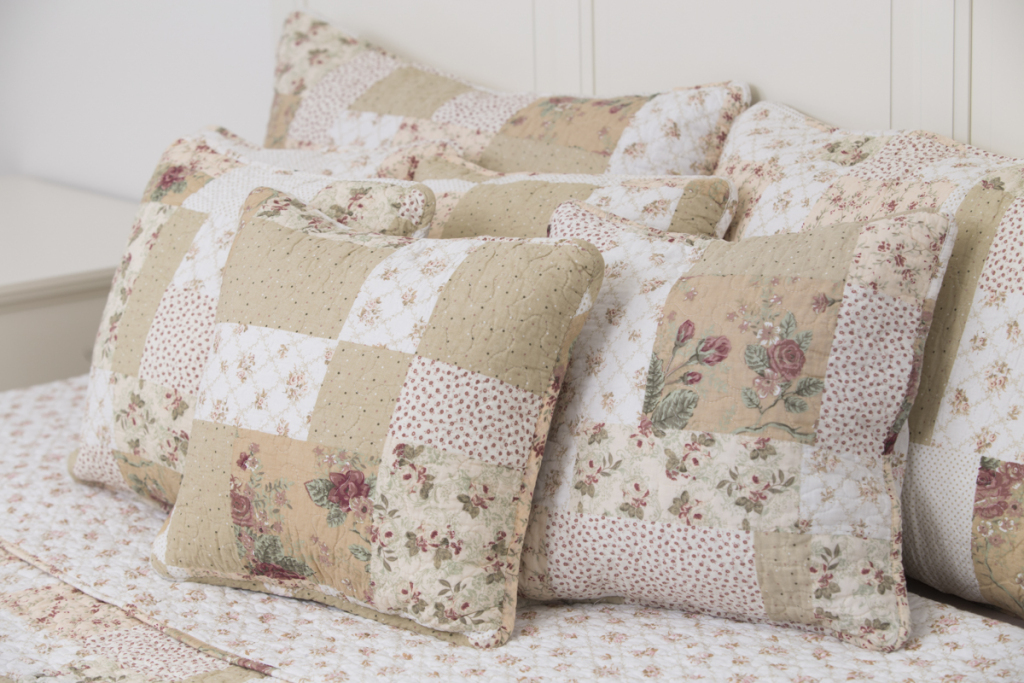 Oboustranný prošívaný přehoz přes postel v patchworkovém vzoru, tentokrát s romantickými motivy v odstínech PUDROVÉ barvy. Přehoz je detailně prošíván v celé své ploše, což zaručuje tvarovou stálost a opravdu snadné pokrývání lůžka. Ozdobné prošití však nejvíce oceníte při pohledu na tento přehoz či polštář. Vypadají totiž opravdu úžasně! Okraje přehozů i povlaků jsou lehce zvlněné.